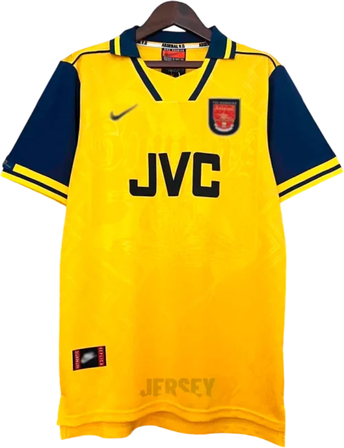 Usa ciclo suave con agua fría para preservar colores y escudo de camiseta del arsenal 1996 1997 visitante, sin mezclar.