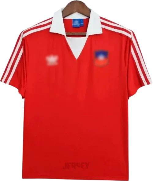 Plancha a baja temperatura con paño; nunca apoyes la base sobre estampados de equipación de la selección chilena 1982 directamente.