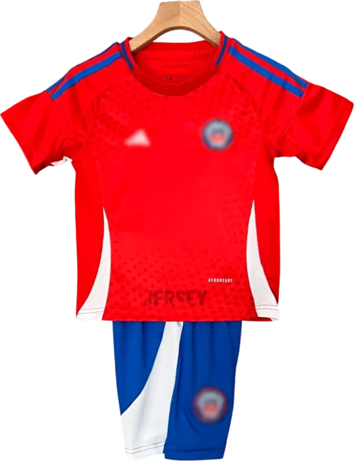 Lava en ciclo delicado con agua fría; conserva colores, costuras y escudo auténtico de camiseta de chile 2024 versión infantil.