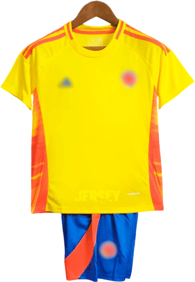 Lava en ciclo delicado con agua fría; conserva colores, costuras y escudo auténtico de camiseta de colombia 2024 versión infantil.