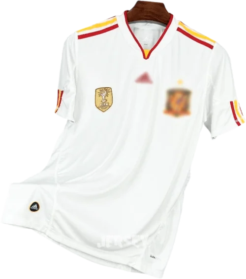 Lava en ciclo delicado con agua fría; conserva colores, costuras y escudo auténtico de camiseta de españa 2011 visitante.