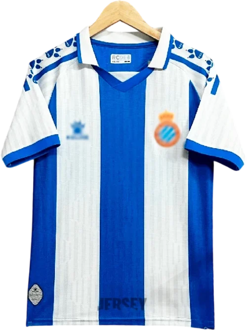 Gramaje medio-bajo, se nota fresca. Costuras planas sin roces. Dobladillo trasero un pelín más largo, queda bien. La uniforme espanyol 2025 seguramente caiga también.