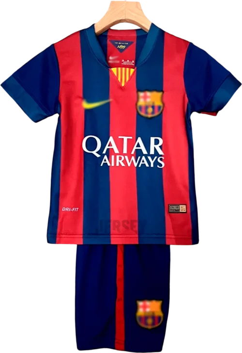 Plancha a baja temperatura con paño; nunca apoyes la base sobre estampados de camiseta del barcelona 2014 versión infantil directamente.