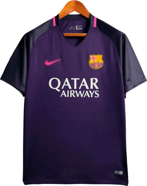 Lava en ciclo delicado con agua fría; conserva colores, costuras y escudo auténtico de camiseta del barcelona 16 17 visitante.