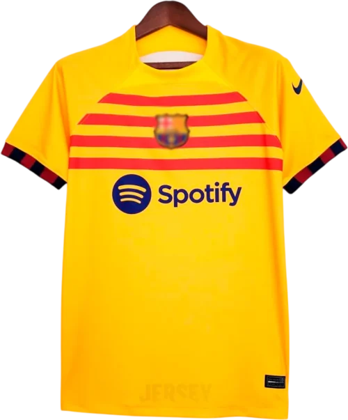 Usa ciclo suave con agua fría para preservar colores y escudo de cuarta camiseta del barcelona 2023, sin mezclar.
