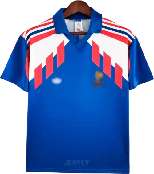 Plancha a baja temperatura con paño; nunca apoyes la base sobre estampados de equipación de la selección francesa 1990 directamente.