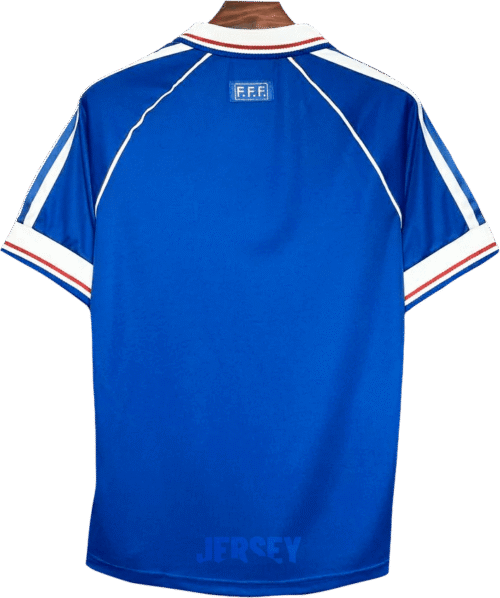 Plancha a baja temperatura con paño; nunca apoyes la base sobre estampados de equipación de la selección francesa 1998 directamente.