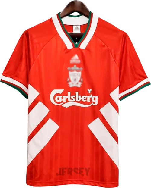 Lava en ciclo delicado con agua fría; conserva colores, costuras y escudo auténtico de camiseta del Liverpool 1993 1995.