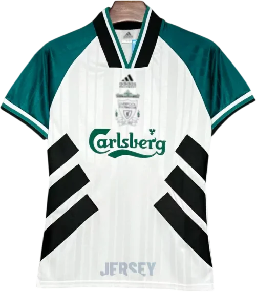 Lava en ciclo delicado con agua fría; conserva colores, costuras y escudo auténtico de camiseta del Liverpool 1993 1995 visitante.
