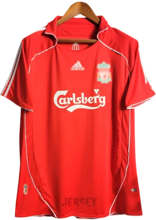 Lava en ciclo delicado con agua fría; conserva colores, costuras y escudo auténtico de camiseta del liverpool 2006 2007.