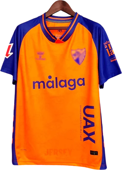 Manga raglán cómoda, quizá con amplitud extra en sisa. Transpiración correcta. Bordado bien centrado. La segundo uniforme del málaga 25 26 cae seguro.