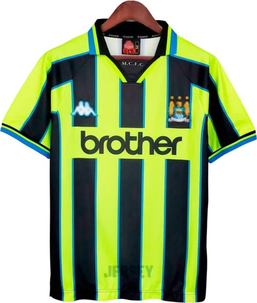 Lava en ciclo delicado con agua fría; conserva colores, costuras y escudo auténtico de camiseta del manchester city 1998 1999 visitante.