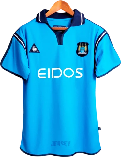 Lava en ciclo delicado con agua fría; conserva colores, costuras y escudo auténtico de camiseta del manchester city 2001 2002.