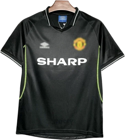 Lava en ciclo delicado con agua fría; conserva colores, costuras y escudo auténtico de camiseta del Manchester United 1996 1997 tercera.