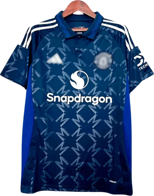 Lava en ciclo delicado con agua fría; conserva colores, costuras y escudo auténtico de camiseta del Manchester United 2024 2025 visitante.