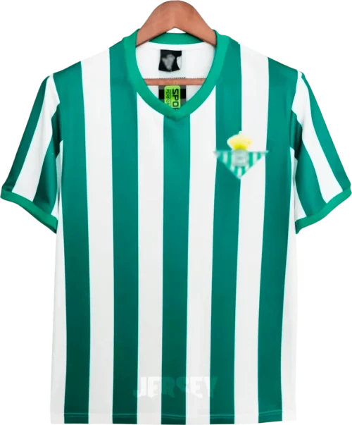 Plancha a baja temperatura con paño; nunca apoyes la base sobre estampados de camiseta retro del real betis 1977 directamente.