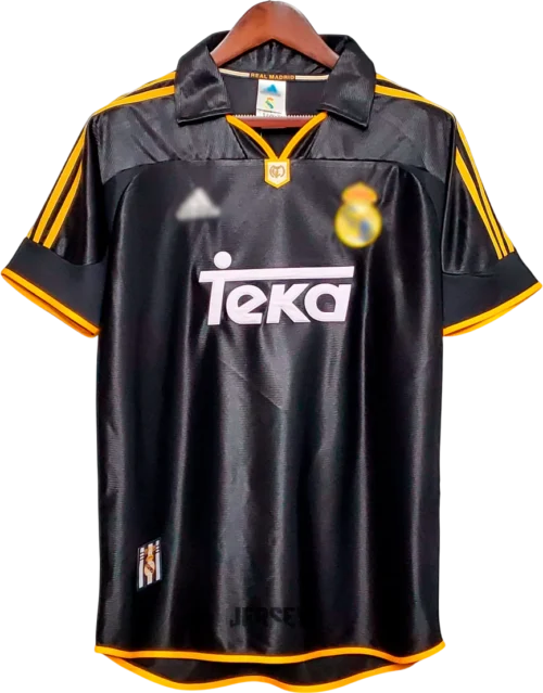 Lava en ciclo delicado con agua fría; conserva colores, costuras y escudo auténtico de camiseta retro del real madrid 1999 visitante.