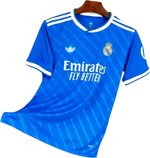Usa ciclo suave con agua fría para preservar colores y escudo de equipación del real madrid 2025 tercera, sin mezclar.