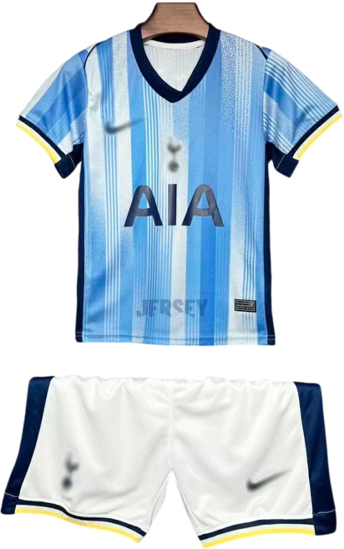 Usa ciclo suave con agua fría para preservar colores y escudo de camiseta del Tottenham 2024 2025 visitante versión infantil, sin mezclar.